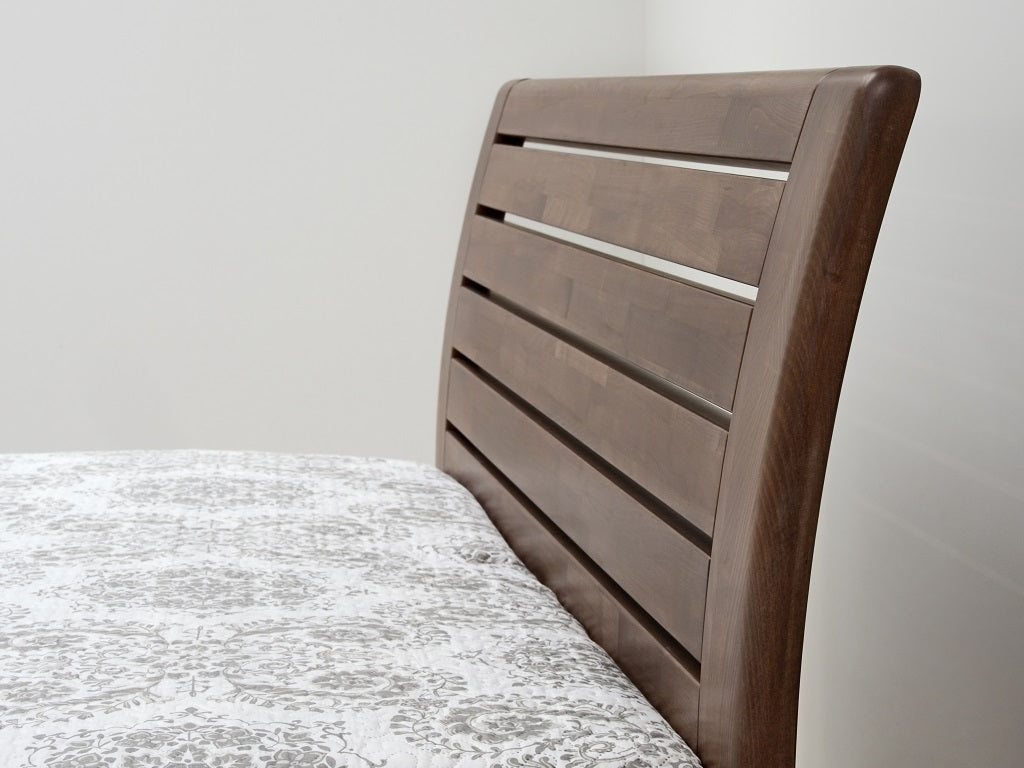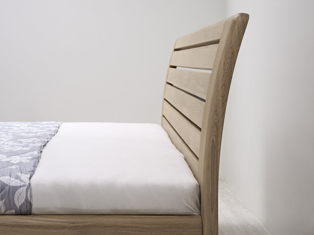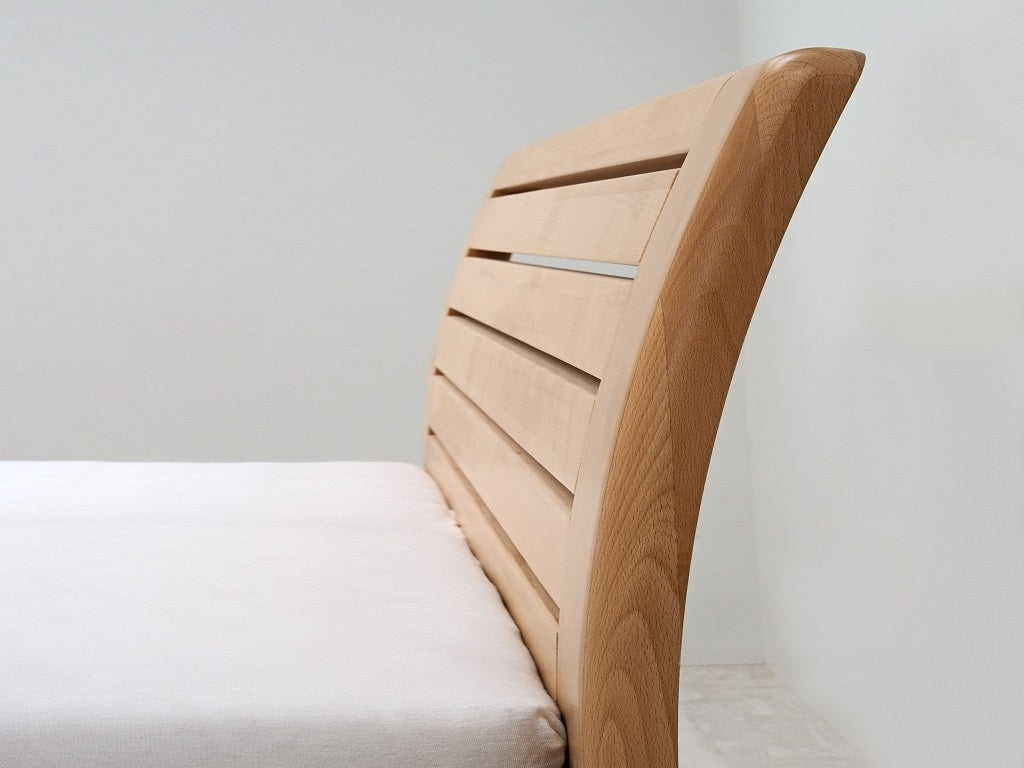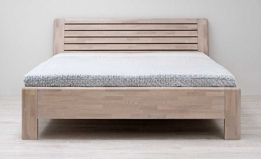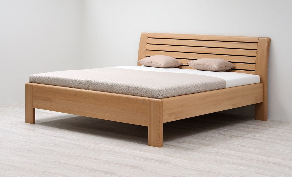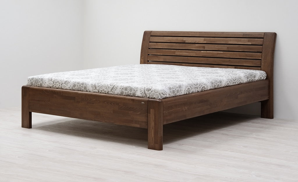 Masivní postel z designové edice. Moderní postel s členitým čelem v sobě spojuje praktické využití s dokonale propracovanými liniemi. Plnost masivního čela vytváří pocit solidnosti a jistoty, který se důmyslně doplňuje s jemně zaoblenými hranami po celé konstrukci postele. Vysoce kvalitní postel české výroby zajišťuje pohodlné a zdravé ležení. Postel má zvýšenou lehací plochu, kterou si můžete individuálně nastavit podle svých představ nebo s ohledem na výšku vámi vybrané matrace. Vysoká lehací plocha umožňuje pohodlnější vstávání a uléhání do postele, což ocení všichni uživatelé bez rozdílu věku.