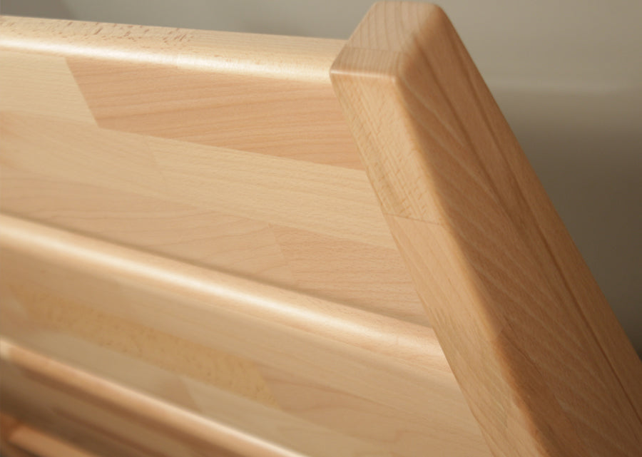 Postel je lakovaná nezávadným ekologickým lakem a nabízí možnost moření v několika dezénech.