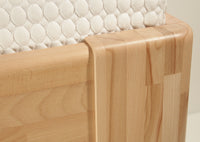 – U postele zaujme prohnuté hlavové čelo a masivní rohové nohy, bočnice 50 cm nabízí komfortní výšku posedu.